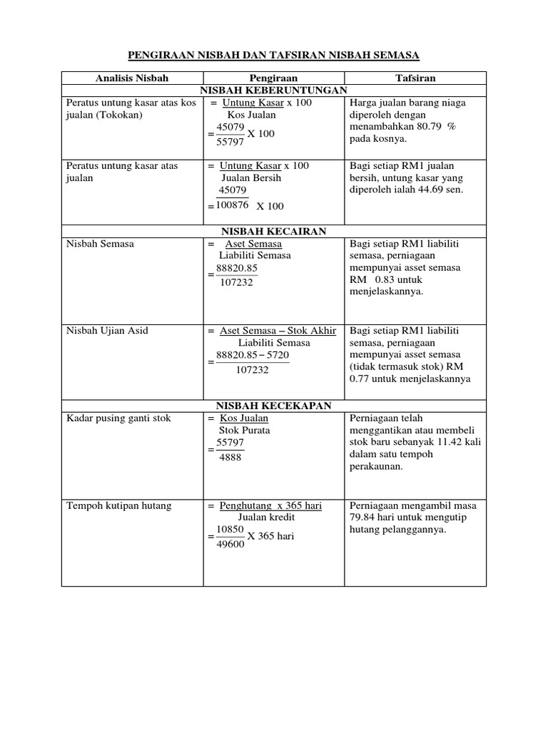 2 10 Menghitung Nisbah Dalampenyata Kewangan Dan 3 1 Analisis Penyata Kewangan Dan Analisis Nisbah Pdf